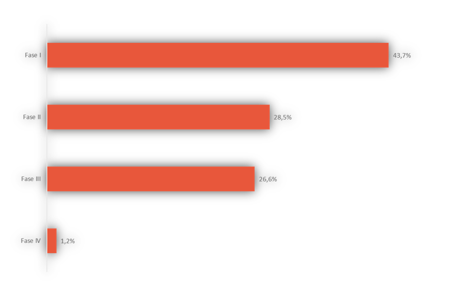 Porcentaje de ensayos clínicos oncológicos por fases en el periodo 2020-2025. | Fuente: REEC.