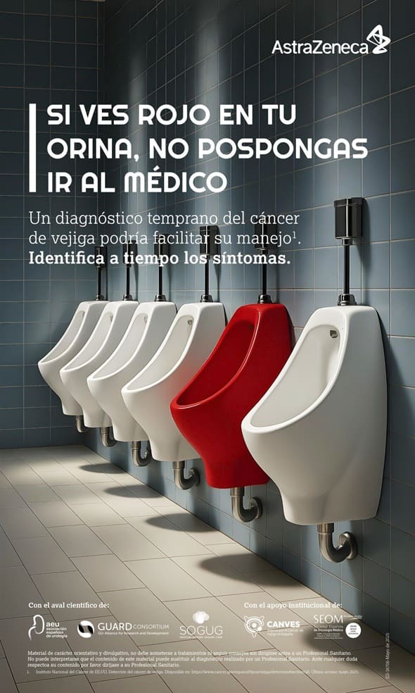 De ahí la importancia de reconocer los primeros posibles signos del tumor, como la hematuria o sangre en orina, de modo que sea más fácil abordar a tiempo la enfermedad. Por este motivo, en el marco de la Semana de la Urología que se celebra en el mes de septiembre en Europa, AstraZeneca ha puesto en marcha una campaña de concienciación acerca del cáncer de vejiga y cómo reconocer los signos de la enfermedad con el aval científico de la Asociación Española de Urología (AEU), el Grupo Español de Oncología Genitourinaria (SOGUG), GuardConsortium, y con el apoyo institucional de la Sociedad Española de Oncología Médica (SEOM) y CANVES, la Alianza por el Cáncer de Vejiga en España.